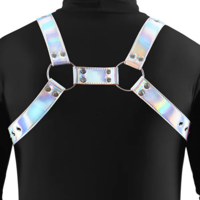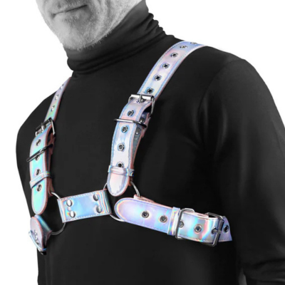 Το ρυθμιζόμενο harness στήθους Cosmo Rogue της NS Novelties συνδυάζει καθαρή γεωμετρία με δυναμική αισθητική. Οι ιμάντες προσαρμόζονται εύκολα, ώστε το harness να εφαρμόζει σταθερά στο στήθος χωρίς περιορισμό στην κίνηση. Τα ασημί nickel-free μεταλλικά στοιχεία προσθέτουν industrial τόνο και δίνουν έντονη αντίθεση στο vinyl υλικό, δημιουργώντας ένα statement κομμάτι με ξεκάθαρη παρουσία.