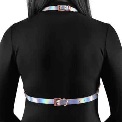 Το ρυθμιζόμενο harness στήθους Cosmo Vamp της NS Novelties συνδυάζει στιλ και σταθερότητα με minimal αισθησιακή γεωμετρία. Οι ιμάντες προσαρμόζονται εύκολα, επιτρέποντας το harness να αγκαλιάζει το στήθος με καθαρή γραμμή και άνετη εφαρμογή. Το ροζ χρυσό nickel-free μέταλλο δίνει έντονο visual contrast, αναδεικνύοντας το vinyl υλικό και ενισχύοντας την παρουσία του στο σώμα.