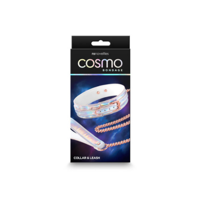 Το κολάρο με λουρί Cosmo Bondage της NS Novelties συνδυάζει holographic vinyl με ροζ χρυσά nickel-free μεταλλικά στοιχεία, δημιουργώντας έντονη, φωτεινή αισθησιακή παρουσία. Το κολάρο εφαρμόζει σταθερά και ρυθμίζεται εύκολα, επιτρέποντας άνετη προσαρμογή γύρω από τον λαιμό, ενώ το λουρί προσφέρει καθαρό και ελεγχόμενο χειρισμό όταν το παιχνίδι απαιτεί καθοδήγηση.