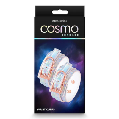 Οι χειροπέδες Cosmo Bondage της NS Novelties συνδυάζουν holographic vinyl με ροζ χρυσά nickel-free μεταλλικά στοιχεία, δημιουργώντας έντονη οπτική παρουσία και σταθερή αίσθηση γύρω από τους καρπούς. Οι ιμάντες ρυθμίζονται εύκολα ώστε η εφαρμογή να είναι καθαρή και προσαρμοσμένη, προσφέροντας άνεση αλλά και σταθερότητα όπου χρειάζεται έλεγχος και περιορισμός κίνησης.